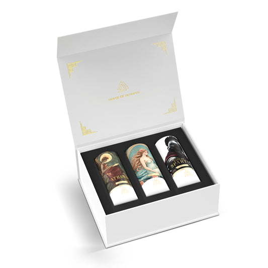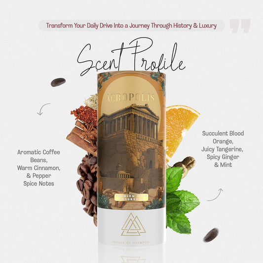 Inspired by the glory and power of ancient Greek mythology, our fragrances are more than mere scents—they are the essence of the gods, blended with 100% natural essential oils, steeped in timeless tradition, and infused with the elegance of modern luxury. Each scent is a masterpiece, carefully forged to not only banish mortal odors but to elevate the very atmosphere of your vehicle, turning every journey into an epic adventure.